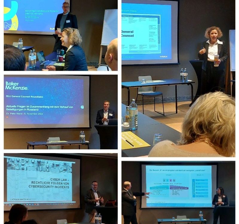 Themen waren u.a. Legal Operations, Verkauf von Beteiligungen in Russland und Cyber Law.
